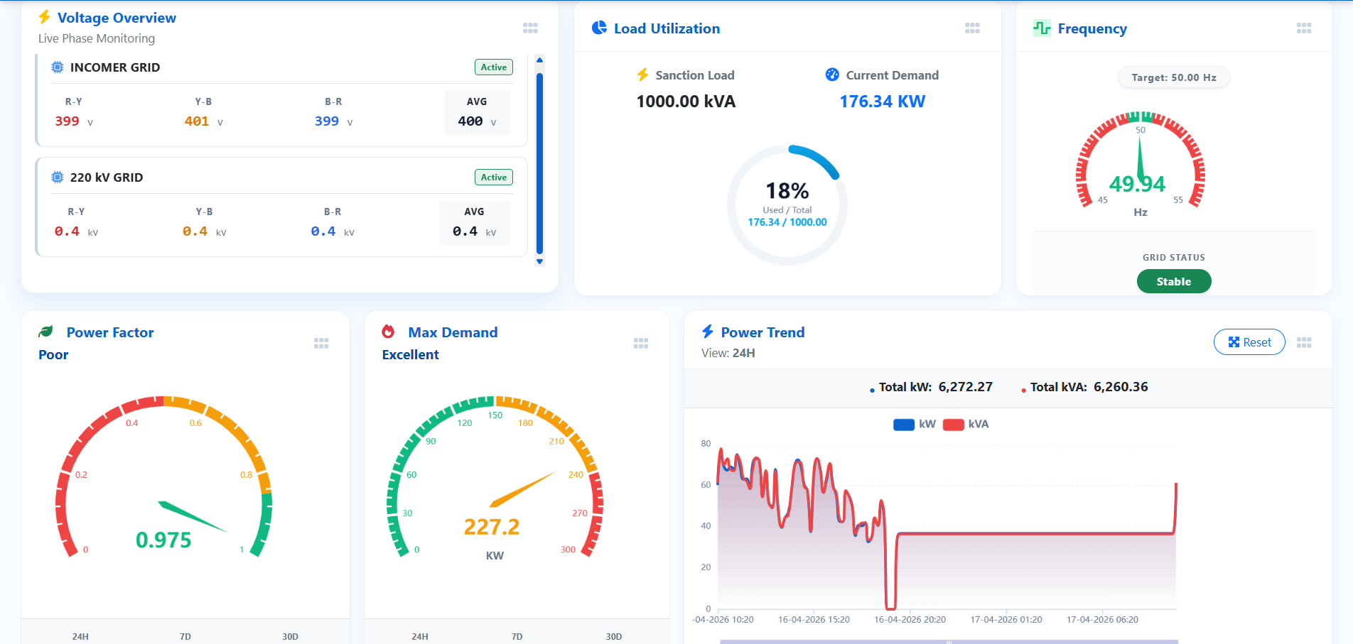 From load analysis and peak demand control to power quality monitoring and predictive insights, our platform empowers industries, commercial facilities, and utilities to reduce energy costs, improve operational efficiency, and ensure sustainable performance.